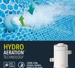 El sistema Hydro Aeration introduce burbujas de aire en el agua, mejorando la oxigenación y optimizando la filtración. Reduce residuos en la superficie, aumenta los iones negativos y mantiene el agua más clara y equilibrada, contribuyendo así, a reducir la necesidad de uso de productos químicos.