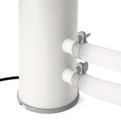 Las mangueras de la depuradora se conectan fácilmente a las boquillas de entrada y salida de la piscina (32 mm). Después de asegurarlas con las abrazaderas tan solo tendrás que enchufar la bomba a la corriente (220-240V). El tiempo necesario para filtrar el agua dependerá del tamaño de la piscina, las condiciones climáticas y la frecuencia de uso. Puedes probar con varios intervalos de tiempo hasta lograr que el agua quede limpia y cristalina.