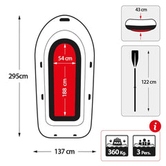 - Tiene 3 cámaras de aire independientes y una interna para que el bote siempre se mantenga a flote en el caso de sufrir algún pinchazo en la estructura exterior.