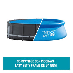 - Cobertor solar Intex para piscinas de diámetro 488 cm, tanto inflables (Easy Set) como de estructura metálica (Metal Frame)