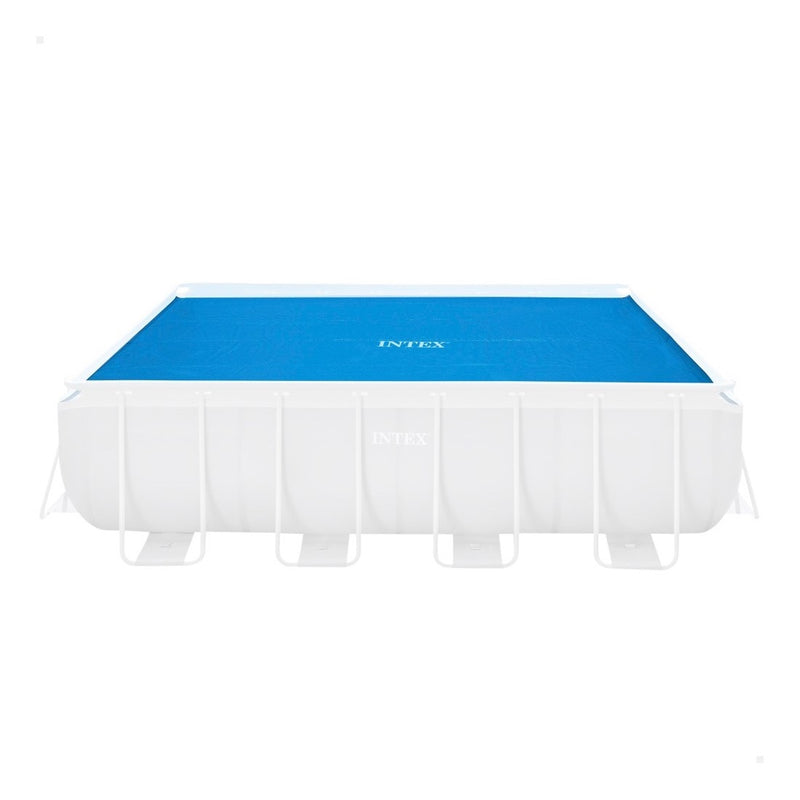 Este cobertor solar de INTEX tiene unas medidas de 378 x 186 cm y está pensado para piscinas de estructura metálica rectangulares de 400 x 200 cm, la diferencia de medidas es porque es necesario que el cobertor encaje en la piscina y esté en contacto con el agua. De esta forma, ayuda a mantener la temperatura del agua y reducir hasta un 95% la evaporación del agua. Al mismo tiempo protege la piscina desmontable de la suciedad.