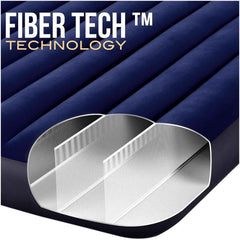 Tener el colchón Inflable INTEX 2 Plazas King 183x203x25 cm Classic Downy a mano siempre es una buena opción para acoger invitados, improvisar una fiesta de pijamadas o para descansar plácidamente como si estuvieras en el colchón de casa cuando vas de camping o realizas alguna escapada. Por eso, en INTEX encontrarás una amplia variedad de colchones inflables con diferentes características pensadas para adaptarse a tus necesidades y mejorar tu descanso y el de tus invitados cuando necesites una cama adicional temporalmente. Todos los colchones inflables están fabricados con construcción interior Fiber-Tech, la tecnología exclusiva de INTEX que consigue que los colchones sean más estables, firmes y cómodos, ajustándose perfectamente a la anatomía de quien los usa.