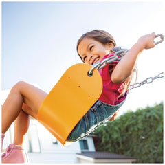 - Materiales: estructura con tubos de acero galvanizado de Ø6 cm con recubrimiento epoxi (resistente, segura y robusta), columpio con asiento de PVC (flexible y resistente) y cadenas recubiertas de plastisol (evita rozaduras y protege contra la oxidación)