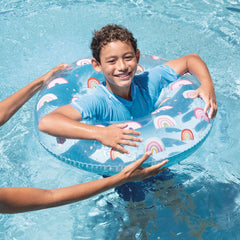 Diseñado para niños a partir de los 8 años, este flotador es la combinación perfecta de comodidad, estilo y diversión. Su diseño mágico con estampados vibrantes lo convierte en el accesorio ideal para destacar en la piscina o en la playa.