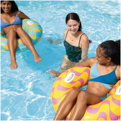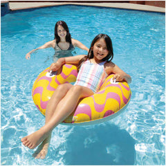 Tener a mano un Flotador Anillo Inflable INTEX Rainbow Remolino 91 cm en verano siempre es una buena opción para relajarse y tomar el sol dentro del agua sin necesidad de mojarse por completo. Además de ayudarte a mantenerte a flote en el agua, son cómodos y fáciles de transportar gracias a su diseño en forma de donut con agujero central.