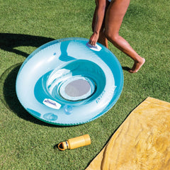 Descubre los flotadores inflables más coloridos del verano. Este inflable tipo sillón anillo con asas tiene un diseño que te sorprenderá, de dos colores llamativos, es tipo asiento para que estés muy cómodo en la piscina o playa este verano.