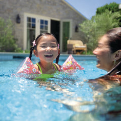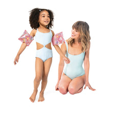 Su encantador diseño floral y colores suaves les dan confianza y soporte en la piscina o la playa. Fabricados con vinilo resistente, estos brazaletes cuentan con dos cámaras de aire independientes y válvulas de seguridad para una mayor tranquilidad durante su uso.