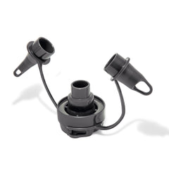Este inflador eléctrico QUICK-FILL incluye una manguera flexible y 3 boquillas de interconexión que se adaptan a cualquier tipo de válvula de un inflable. Las boquillas van unidas por un cordón de PVC para evitar su pérdida.