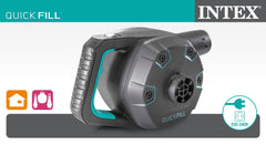- Bomba de aire eléctrica QUICK-FILL INTEX, multifunción: hincha y deshincha, capacidad: 1.100 litros/minuto, 2 velocidades