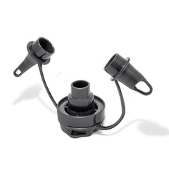 El inflador eléctrico QUICK- FILL incluye 3 boquillas de interconexión adaptables a cualquier válvula. Las boquillas van unidas por un sistema anti perdida, ligero y muy fácil de usar.
