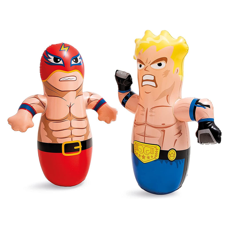 Juguete mono porfiado INTEX de 91 Cm con diseño de luchador, apto para uso interior y exterior. Fomenta el ejercicio. ¡Ríe y juega sin parar con este simpático mono inflable! Diseñado especialmente para niños, el Mono Porfiado siempre vuelve a ponerse de pie después de cada empujón o golpe, gracias a su base lastrada con agua. Ideal para liberar energía de forma segura y divertida.