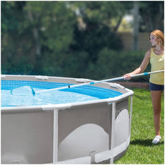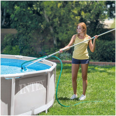 Es kit de limpieza de piscinas es compatible con el mango telescópico de aluminio de 26,2 mm de diámetro de INTEX. Además, el cabezal de aspiradora también se puede conectar a la manguera de jardín.