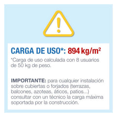 - Lona: Diseñada en color negro en el exterior y gresite en el interior, fabricada con tres capas laminadas de PVC-Poliéster extra gruesa.