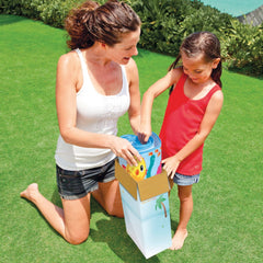 Gracias a su estructura rígida y fácil de desplegar, se arma en segundos sin necesidad de inflar. Su colorido diseño oceánico estimula el juego imaginativo, siendo ideal para refrescarse en los días calurosos de forma rápida y sencilla.