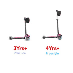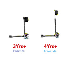 El modo de práctica brinda estabilidad para aprender a conducir y, una vez que tu pequeño esté listo, desbloquee girando la T hacia la izquierda para obtener un mecanismo completo de "inclinación a giro", ¡perfecto para maestros de scooter con estilo libre y experimentados!